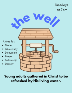 The Well is a place to gather. It’s a place to grow in faith. It’s a place to ask honest questions. It’s a place to be refreshed by the living water of Christ.